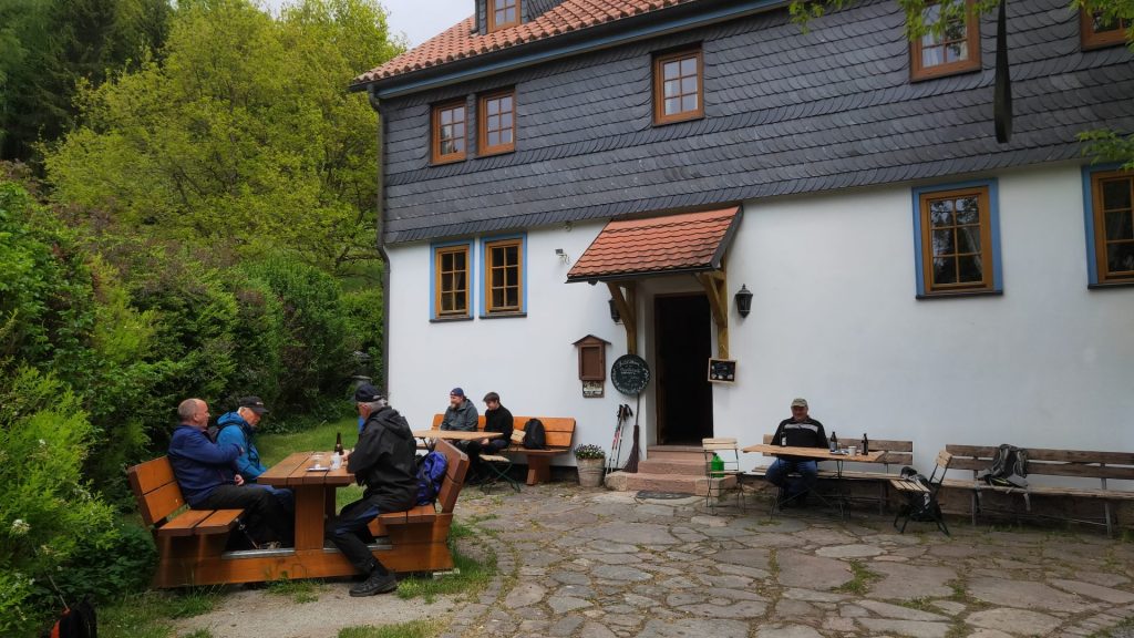 Am 18.Mai 2025 stand unsere Wanderung, zur Oberwallbachsmühle, auf dem Plan. Ursprünglich war es vorgesehen, mit der Bahn nach Wasungen zu fahren und von dort über die Hohe Straße, zur Oberwallbachsmühle zu wandern. Diese Variante war allerdings recht schnell verworfen, da es auch von der Schwallunger Hundehütte eine geeignete Wanderrunde gab. Diese Möglichkeit erfuhren wir von Helmut (Gastwanderer aus Bonndorf), bei der Wanderung zum Forstbotanischen Garten in Wasungen. Somit war die Entscheidung getroffen und der positive Nebeneffekt war, wir hatten mit Helmut gleich einen Wanderleiter. Prima. Dieses mal trafen wir uns erst um 10 Uhr, da die Oberwallbachsmühle erst um 13 Uhr öffnete. 14 Teilnehmer nahmen die Strecke in Angriff und das bei herrlichen Wanderwetter. Am Ende der Wanderung waren es 12km inklusive 300 Höhenmeter. Das war ein gelungener Sonntagsausflug. Es folgen ein paar Impressionen. Viel Spaß !!!
