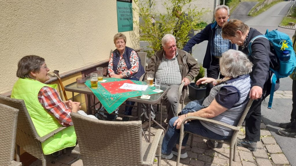 Bei bestem Wanderwetter liefen wir zu neunt am Sonntag, 14.09.25 vom Ortsausgang Bad Liebenstein über das Felsentheater, vorbei am Ida-Denkmal, der Burgruine Bad Liebenstein und dem Katzenstein in Richtung Hohe Klinge. Pünktlich 12 Uhr nahmen wir die reservierten Plätze ein. Nach dem Mittagessen nahmen wir den (anderen) Rückweg in Angriff, sodass wir gegen 14.45 in den 3 PKW`s auf dem Nachhauseweg waren. Die Wanderapp zeigte 10,5km an.