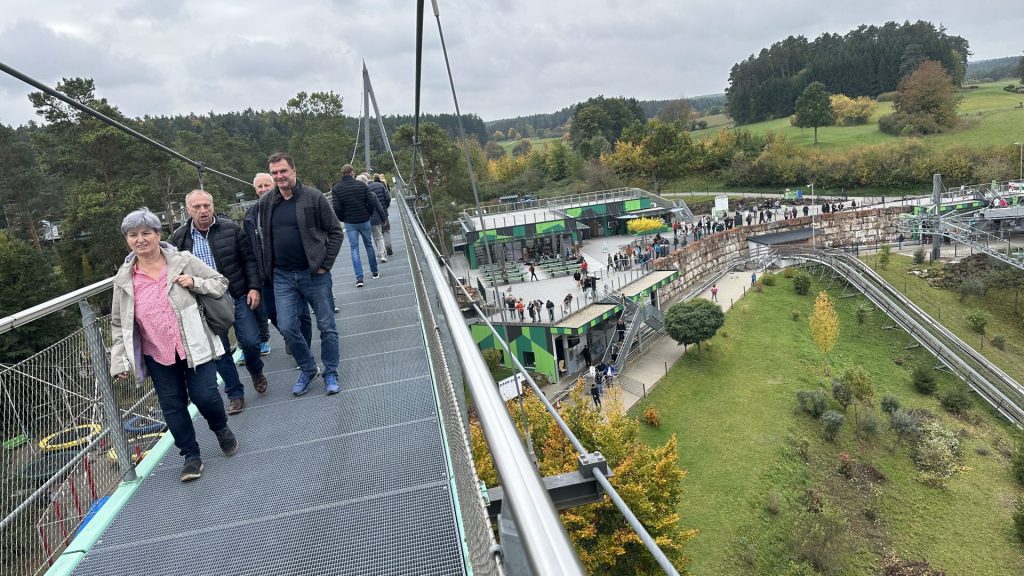 Am 11.10.25 führte uns die diesjährige Wanderfahrt in die Fränkische Schweiz. Nach ca. 2,5 h Fahrt erreichten wir unser erstes Tagesziel, den Wildpark Hundshaupten. Auf 3 verschiedenen Routen zwischen 1,4 km und 2,7 km konnte jeder individuell das sehr interessante Wildgehege erkunden. Im Versorgungstrackt war anschließend auch noch eine kurze Rast möglich. Nach 2 Stunden fuhren wir weiter zur Schlehenmühle, wo ausgezeichnetes Fränkisches Mittagessen (zB. Schäufela) auf uns wartete. Am Nachmittag erkundeten wir den Skiwalk und die Freizeitanlage bei Pottenstein. Bei Kaffee und erlesenen Kuchen-/Tortenspezialitäten ließen wir den Tag in einem Cafe in Forchheim ausklingen. Rückankunft in Wernshausen: ca. 20 Uhr.